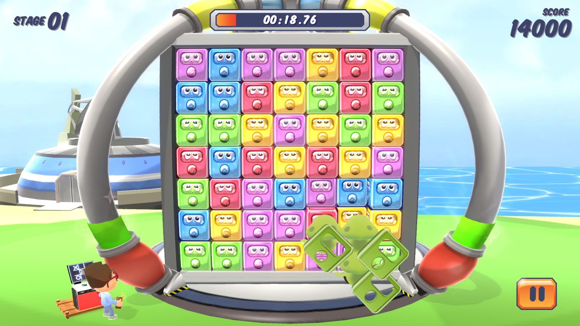 Eventually you unlock different heads which let you turn into an astronaut (so you can jump over gaps and blocks) and a knight (so you can destroy certain objects blocking your way).