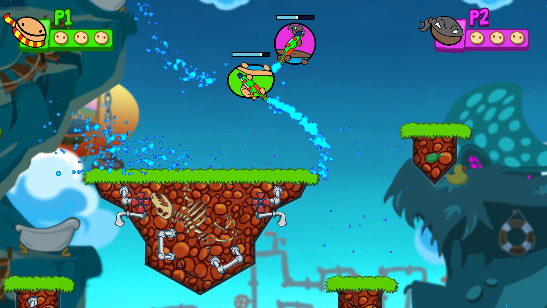 Rovio’s second game in the set is a competitive multiplayer game (though you can play against the CPU) in which up to four massive round chaps armed with water guns have to spray themselves around a randomly generated, suspiciously Worms-like stage, trying to bump each other into the sea below.