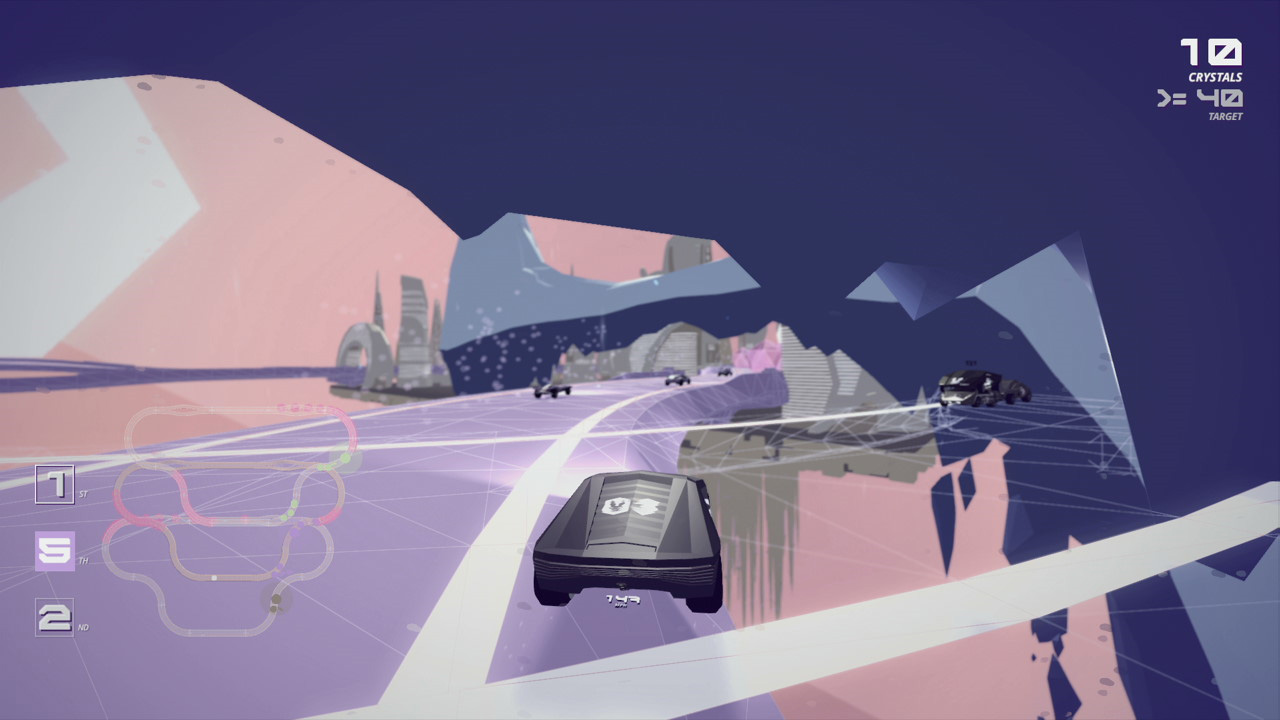 At first glance it looks like the sort of futuristic racing game we’ve been starting to see a lot from indie developers recently. The likes of Radial G, Distance, Redout, Drift Stage and Jet Car Stunts all have relatively similar looks, with deliberately low-poly cars racing along minimalist tracks with an emphasis on speed.
