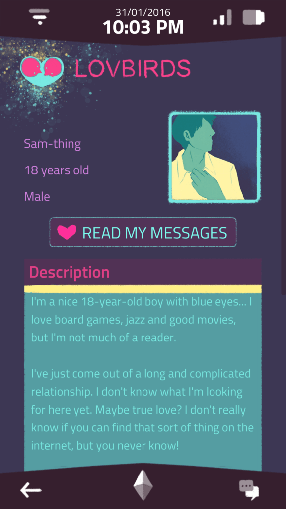 It soon becomes clear as you work your way through Sam’s messages that all is not rosy in his life. His girlfriend’s pissed off at him for some reason, his dad’s wondering where he is and some of his board game chums keep referring to a big secret.