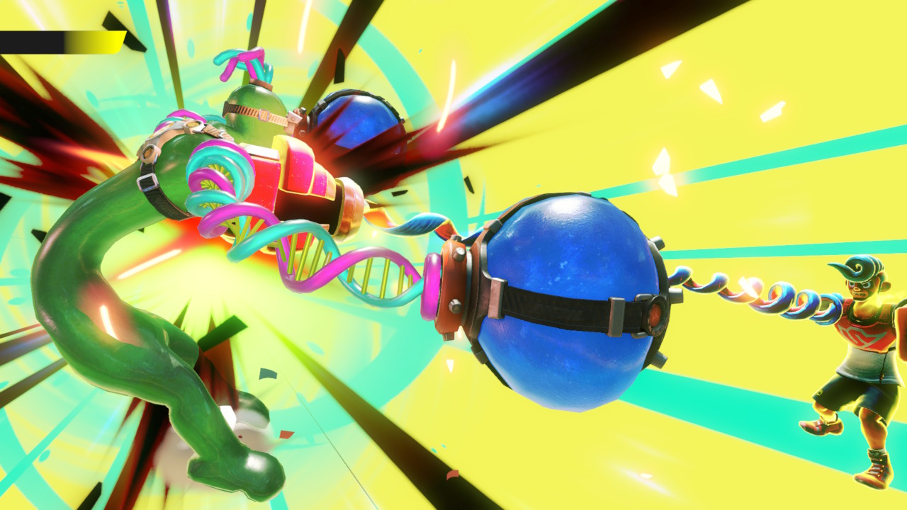 Oddly, the best way I can describe the feeling I get when I’m playing ARMS is this: it provides the satisfaction of throwing a fireball in Street Fighter, except the fireball is on a piece of elastic so you get to throw it over and over again. And you get to actually aim it.