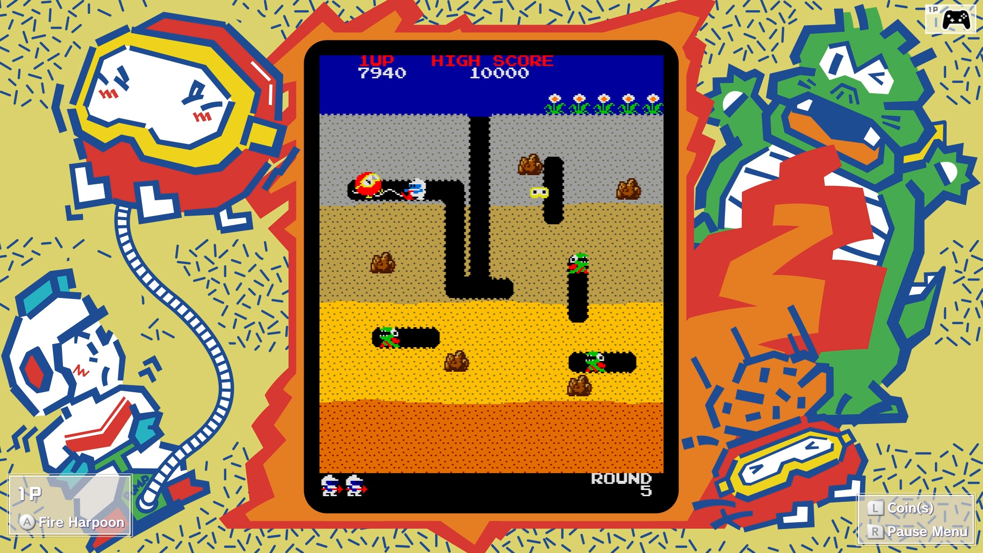 You play as a little chap called Dig Dug, who was later renamed Taizo Hori and retconned to be the father of Namco’s other subterranean star Mr Driller.
