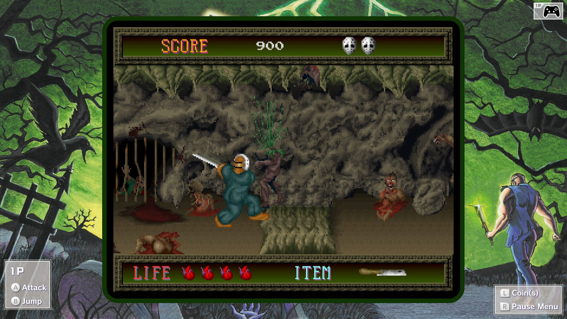 Making its Namco Museum debut is the controversial Splatterhouse, a delightfully grotesque action game.