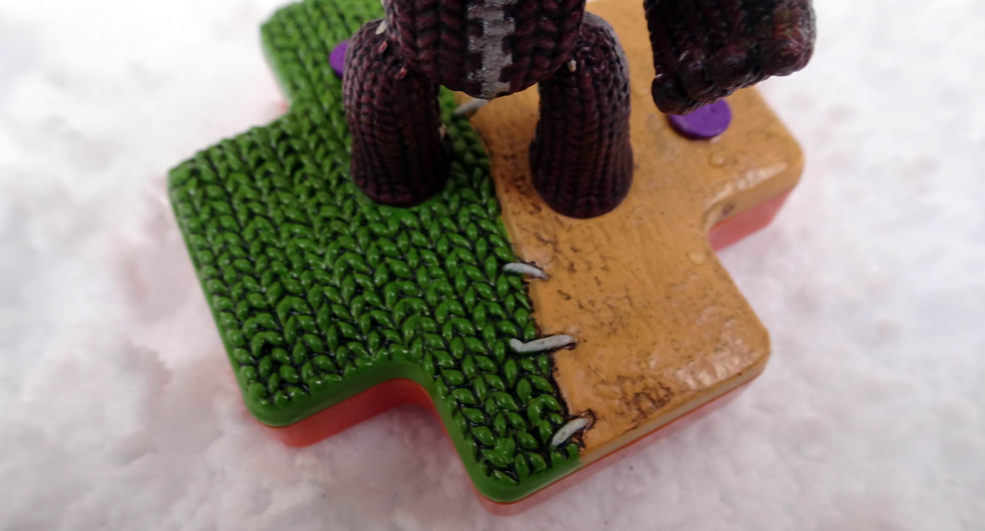 His little smirk is brilliant, the detail in the ‘fabric’ and zip are great and his base is brilliant too: it looks like it’s all stitched together and has some spare buttons sewn on there for good measure.
