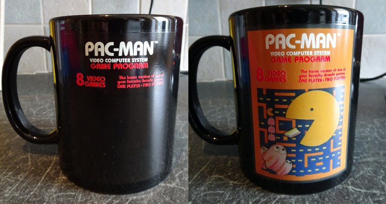 However, once you pour hot water into it, the image changes and reveals that the logo isn’t for the arcade version of Pac-Man, but rather the Atari 2600 version which was famously terrible and helped contribute to the video game crash of 1983.