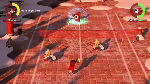 One takes place on a ship, for example, with a big mast in the middle of the net that you can deflect shots off to confuse your opponent. Another is set at a railway station in a snowy mountain, meaning every now and then a horde of commuters will shuffle across the middle of the court, potentially blocking your shot (or even hitting it back: there are a few rogue Shy Guys in there with tennis rackets).