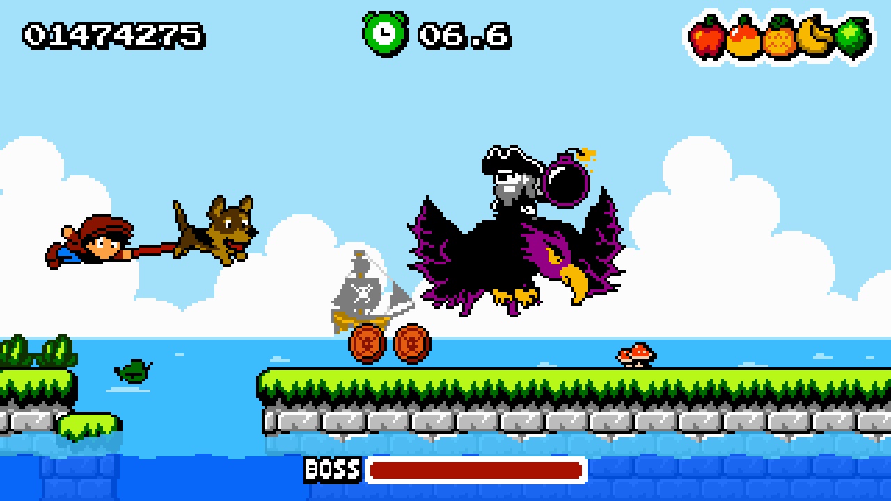 This is all just an excuse for a standard side-scrolling platform game, where you make your way through a series of stages and defeat a boss at the end of each world.