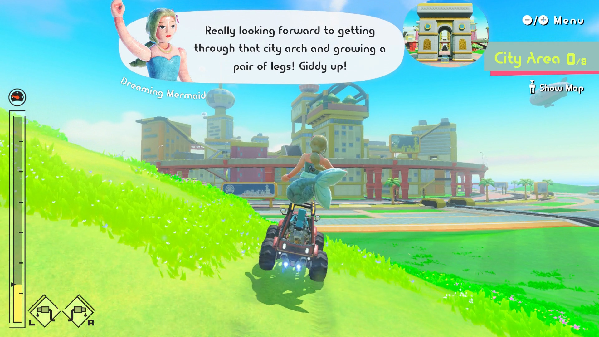 • a screen holder, so you can attach the Switch to the car for handheld goodness. Naturally, thi becomes less useful when you switch to the submarine or plane, but if you just fancy a drive around it’s nifty enough (especially if you use the optional first-person viewpoint).