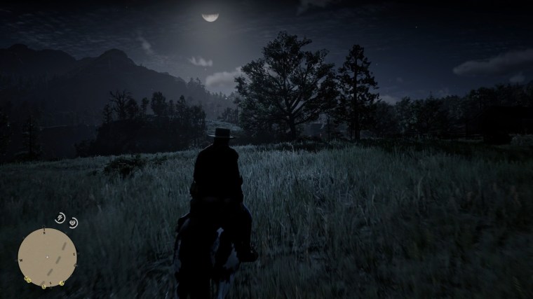 Red Dead 2 gives me that same feeling, not only with rain but its other beautiful environmental effects. Just look at the way the moonlight lights up the grass here and tell me that isn’t one of the most stunning things you’ve seen in a game:
