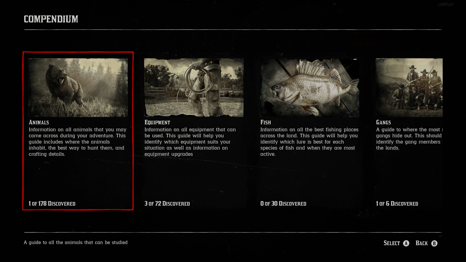 In all the game wants you to find and collect 178 animal species, 72 pieces of equipment, 30 species of fish, 43 types of plant, 19 breeds of horse, 59 weapons and 144 hidden cigarette cards, all while encountering and infiltrating the various hideouts of the six main gangs roaming the lands.