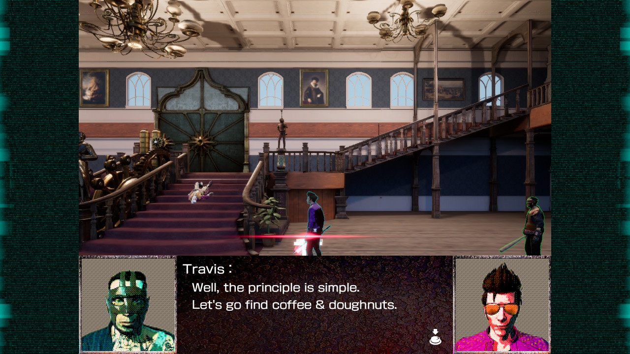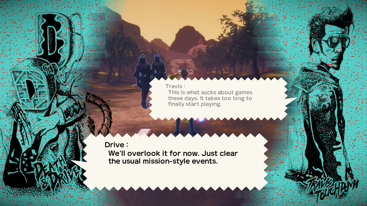 This is all supported with the typical fourth wall breaking people have come to expect from Suda51. There are constant references to the game’s development (one cut-scene is cut short to save on localisation costs), the Unreal Engine is regularly heralded as a saviour (with numerous Unreal Engine t-shirts to unlock) and lengthy dialogue is criticised by the characters, who openly protest that nobody bought this game to read lots of text.