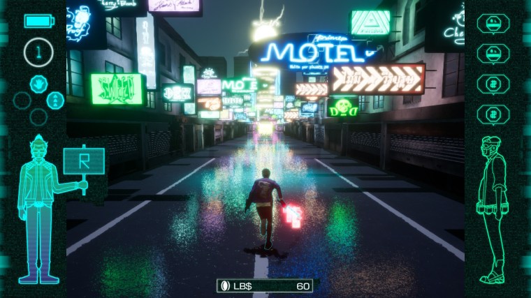 It’s the stuff that has nothing to do with the main game that really give it character too. Going off in tangents is Suda51’s forte, and when he’s at his best he doesn’t so much subtly nod and wink as go entirely all in. Each time you unlock a new Death Drive game, you also unlock a ‘90s style magazine article previewing the game, complete with loads of bad jokes and tips. Each level has a ramen shack or two that restores your health: when you visit it you unlock a new article on Travis’s food blog where he reviews each ramen dish in detail.