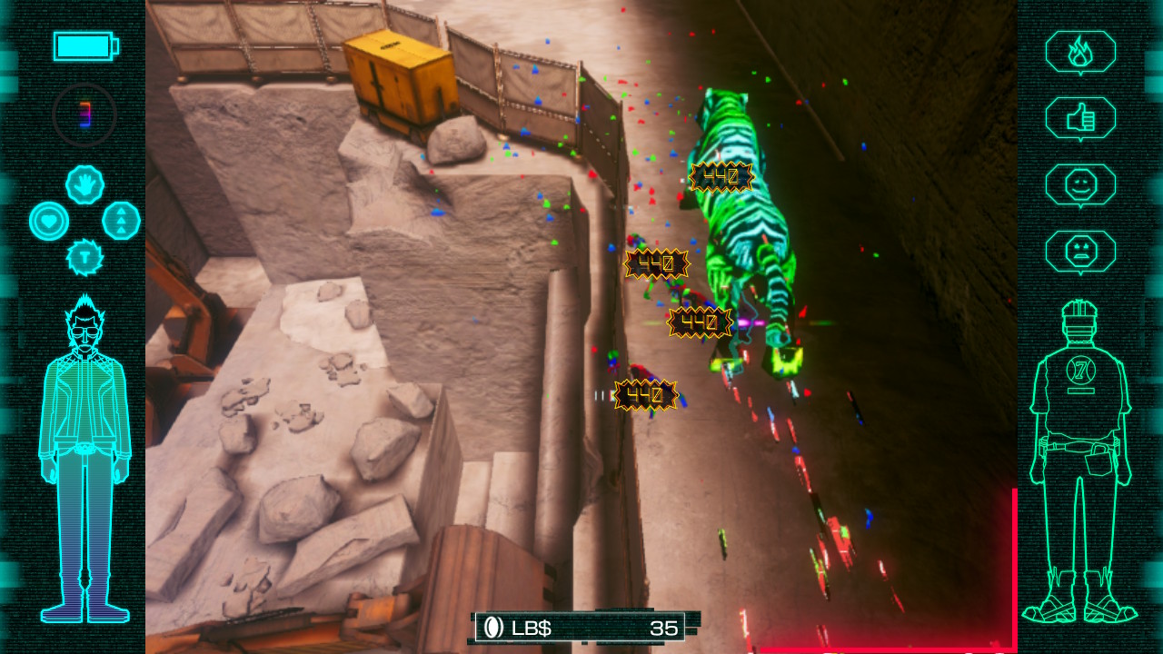 The combat is fairly straightforward. You’ve got a quick attack button, which you can hold down to constantly swing your beam katana (or your baseball bat, if you’d rather play as Bad Man), a strong attack button – which stops you in your tracks and takes time to recover from – and a dodge move.