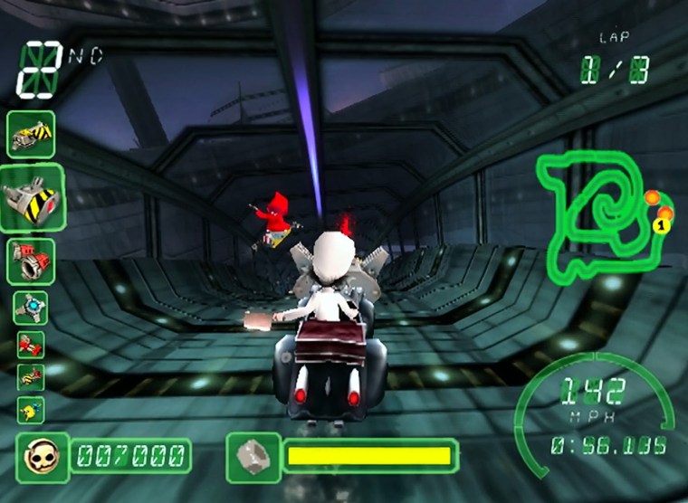 Despite having zero imagination in most other areas, Crazy Frog Racer actually handles its weaponry in an interesting way.