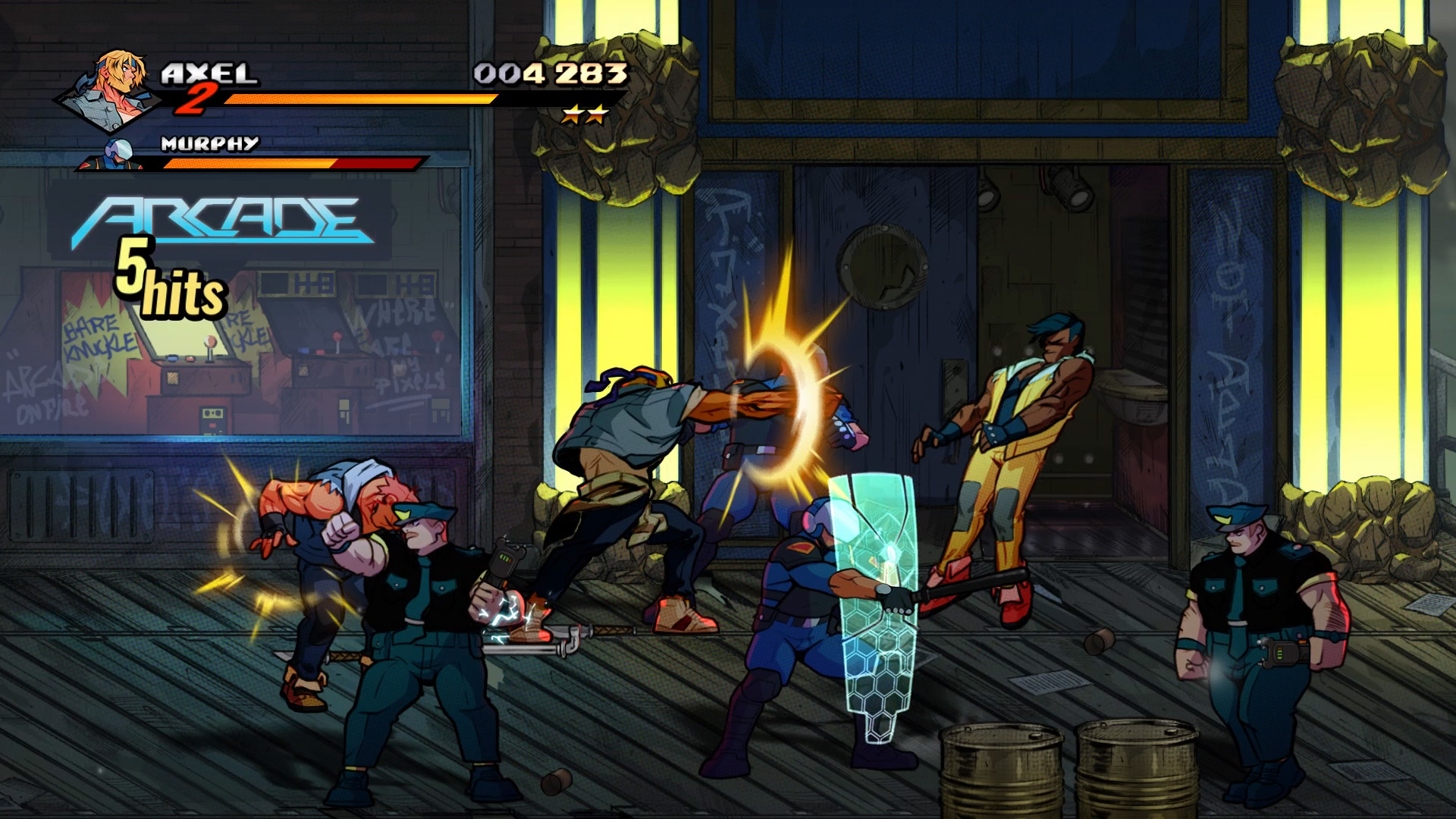 These are relatively minor quibbles, though. The most important thing is always how fun a game is to play and in this respect Streets of Rage 4 nails it most of the time. There are some moments where it doesn’t quite nail it: the riot police enemies are extremely annoying, because their shields can be frustrating to break, especially with weaker characters. Most of the boss fights, meanwhile, seem to last forever.